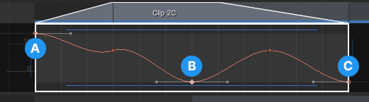 **(B)** Most keyframes have two tangents where the left tangent controls the shape of the animation curve before the keyframe, and the right tangent controls the shape after the keyframe.