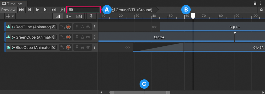 Enable the **Play Range** toggle to continuously loop playback within a specific range. You can only set a play range when previewing a Timeline instance within the Timeline window. Unity ignores the play range in [Play mode](https://docs.unity3d.com/Manual/GameView.html).
