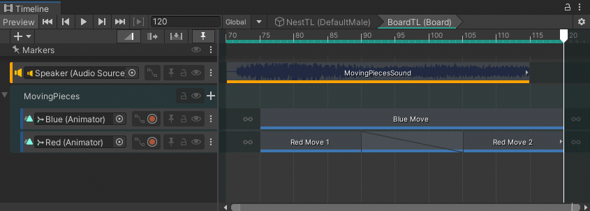Use the Timeline Selector to select which Timeline instance to view, modify, or preview in the Timeline window. To select a Timeline instance, click the Timeline Selector and choose from the list of Timeline instances in the current Scene.